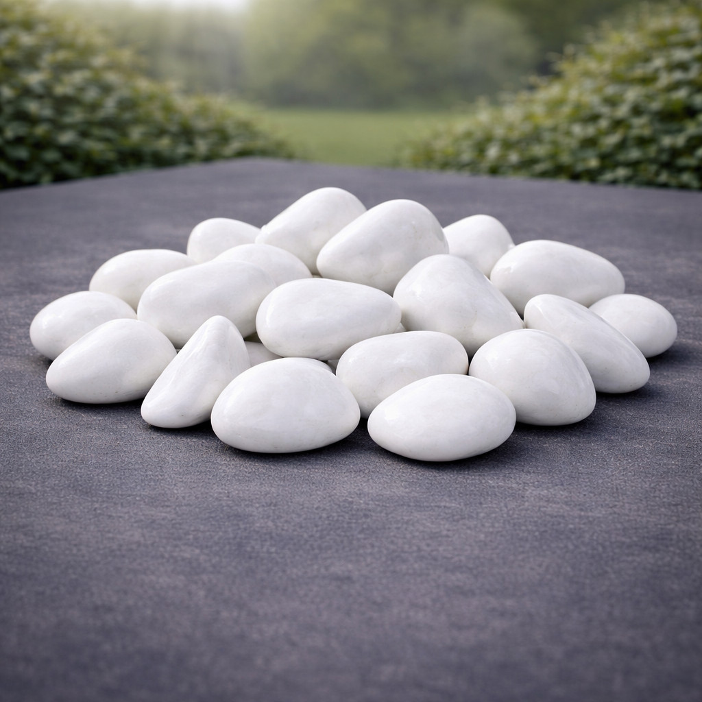 A 6–10 cm méretű Thassosi fehér márvány díszkő prémium választás kertépítéshez, ágyásokhoz és dekorációhoz. A természetes márvány ragyogó fehér színe tiszta, elegáns megjelenést biztosít, miközben kiemeli a növényeket és rendezettséget ad a kerti felületeknek.